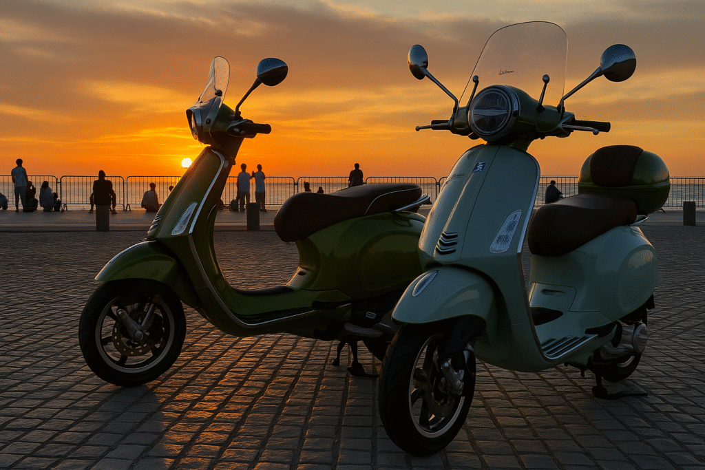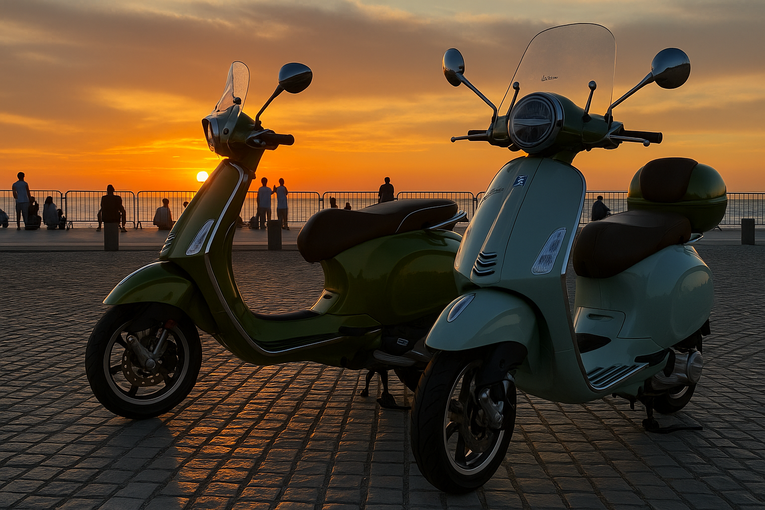 They are offered Yamaha NMAX 125cc (2025 Year) – 4 pieces, and Vespa Primavera 50cc in mint, Gray and green colors.